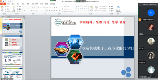 九月,天朗气清,又是一年迎新时。为了让2021级新生们更好地了解自己的专业,加深对未来学习方向的认识,激发他们对所学专业和学科的热情,兴趣。智能装备工程学院机械电子工程系于9月30日下午15:00在利用线上交流的方式展开了机械电子工程系的专业介绍说明会。