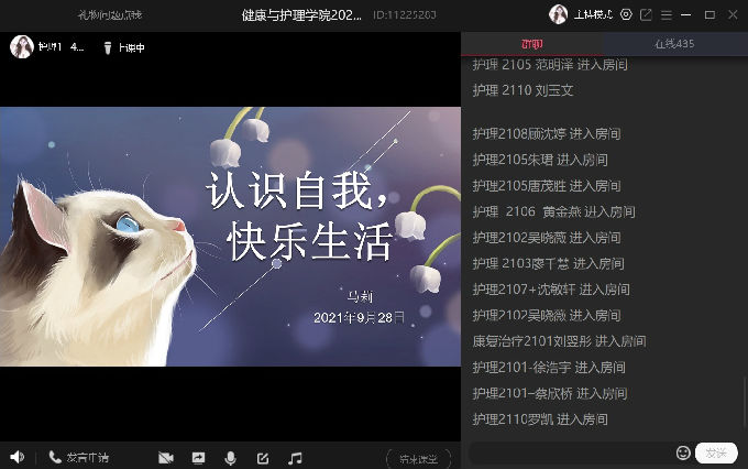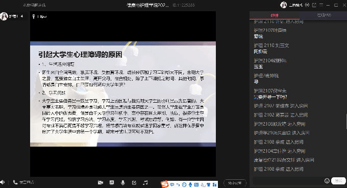 为了帮助2021级新生尽快转变角色,树立大学生主人翁意识,认识专业特色及发展方向,加强学生思想政治教育,以青春活力的全新面貌尽快适应大学生活节奏,9月28日上午9点,健康与护理学院开展了线上新生入学教育主题活动。本次教育的有主讲人有詹雪丽老师、杨小仙老师、唐凤老师、宋绍征老师、马莉老师,2021级新生全体参与。