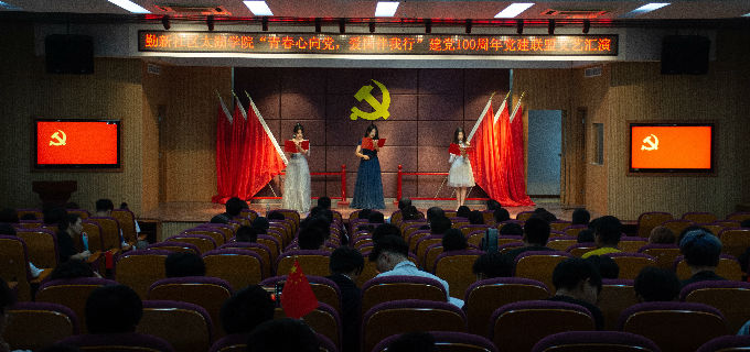 此次文艺汇演经过大家的精心设计,每一个环节、每一个节目都透露着青春的气息,不同于以往的传统演艺,同学们采用党史知识问答以及历史场景还原的方式把红色记忆和传统文化融入到节目中去,穿插了学生们自己的想法和创意,寓教于乐的同时使得节目更加的生动有趣。