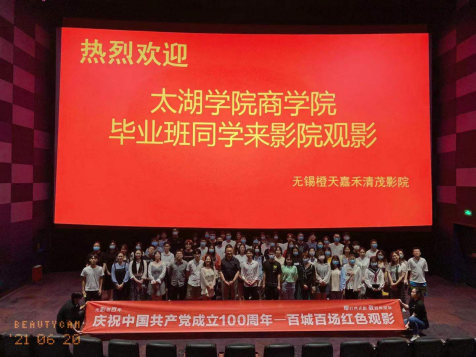2021年6月20日,庆祝中国共产党成立100周年一百城百场红色观影活动暨best365英国在线体育官网商学院2021届毕业典礼在茂业橙天嘉禾影城3号厅隆重举行。