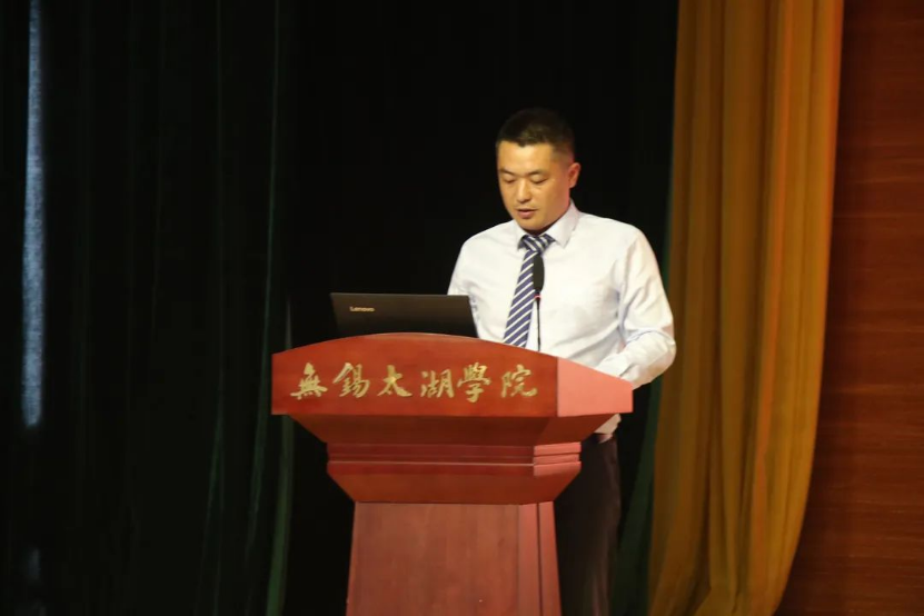 会议第七项议程,物联网1704厉轩学生家长代表发言,他表示四年里,学校让学生参加了许多的活动,锻炼了自身的能力,让家长看到自己的孩子能够得到进步而感到欣慰,同时他也对老师和领导的悉心教导表示感谢。