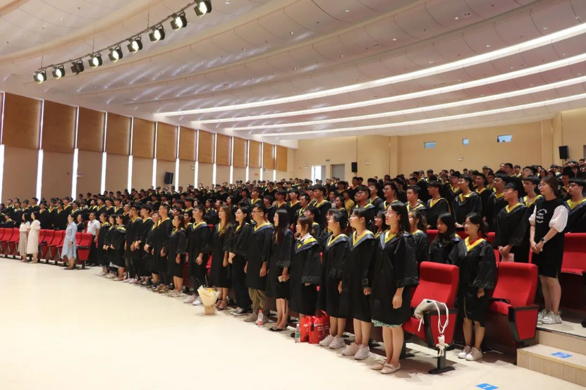 在拨穗仪式结束后,毕业班辅导员周期、胡玉婷给毕业生们带来她们改编的歌曲,悠扬的歌声在报告厅里飘荡,每个毕业生都为之动容,有的跟唱,有的开启闪光灯,有的伸出手臂随着音乐摆动,青春的美好情愫,不想离别的愿景都在毕业生心中不断发酵。