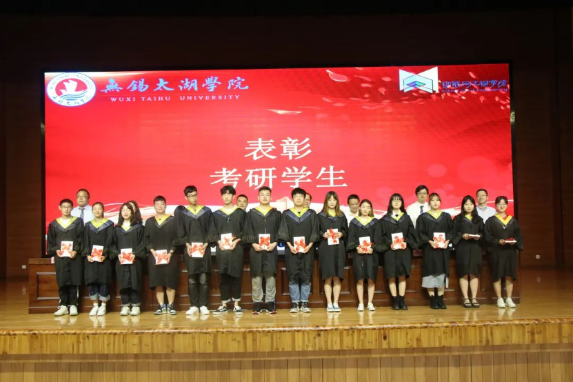 会议第四项议程,主持人王华君宣布并祝贺 2021 届考研录取学生,并赠予考研先进表彰证书。