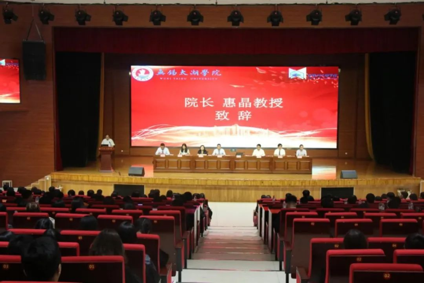 会议第一项议程,主持人介绍参加仪式的学院领导,他们分别是物联网工程学院院长惠晶教授、副院长方宁生教授、物联网工程学院党总支副书记沈峰、电子工程系林成浴教授、通信工程系尚弘教授、物联网工程系姚湘教授、计算机科学与技术系周扬教授。