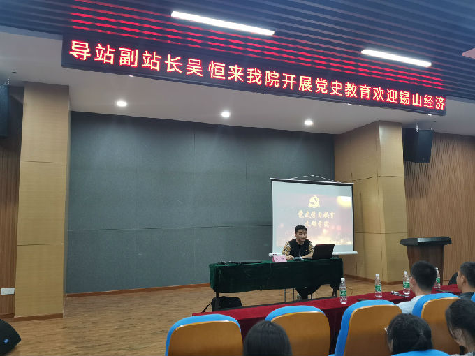 为让广大青年学生对标中国共产党百年奋斗历史,培养艰苦奋斗、勤俭节约的精神,树立积极向上的人生态度。6月3日,健康与护理学院党总支特邀锡山经济技术开发区党建工作指导站副站长吴恒,围绕“学习中国共产党党史,确立正确的入党动机”主题,在大学生活动中心A三楼报告厅开展了党史学习教育。参会嘉宾有锡山经济开发区科创中心主任姚冰,物联网工程学院党总支副书记沈峰,健康与护理学院党总支副书记胡宇,物联网工程学院、健康与护理学院学生党员及入党积极分子参与了本次党史教育宣讲。