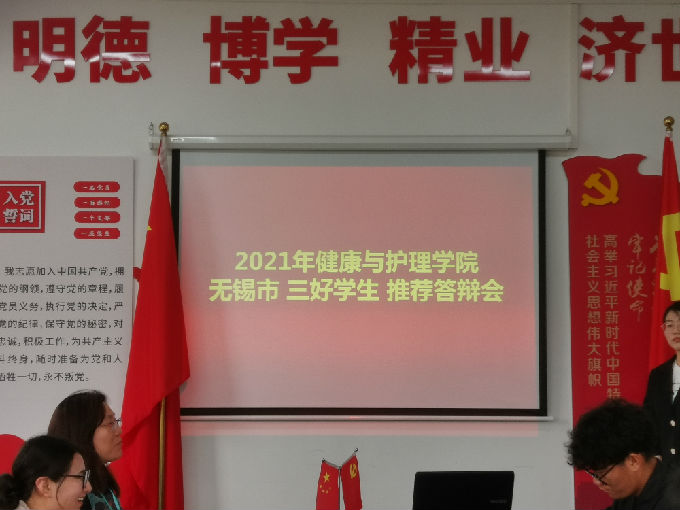 根据无锡市教育局《关于评选2021年市级三好学生、优秀学生干部和先进学生集体的通知》(锡教德〔2021〕5号)文件精神,促进学院学风、班风建设,我院于2021年5月19日中午在5号楼206会议室开展了健康与护理学院2021年市级“三好学生”、“优秀学生干部”和“先进学生集体”推荐答辩会。担任此次答辩会的评委有学工秘书马晓星,各年级辅导员詹雪丽、马莉、陈春晓、闵娟娟,班主任陈朝军、顾乐盈老师,健康与护理学院党总支副书记胡宇列席。
