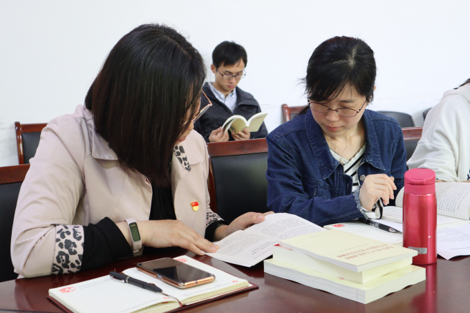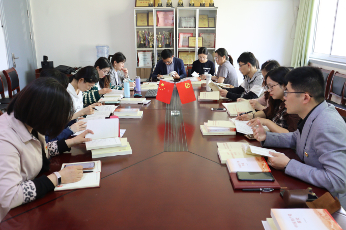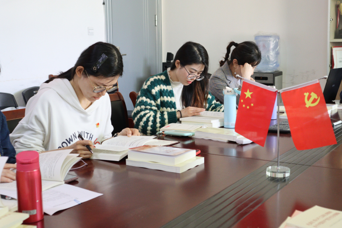 首先,杨敏传达了学校关于组织开展党史学习教育的具体要求、目标任务、活动内容和组织保障等,并为每位党员教师转发校党委购买的《论中国共产党历史》《中国共产党简史》《毛泽东、邓小平、江泽民、胡锦涛关于中国共产党历史论述摘编》《习近平新时代中国特色社会主义思想学习问答》等党史学习教育教材。随后,由党总支副书记杨学圣进行习近平《论中国共产党历史》导读。杨书记强调,“学党史、悟初心、办实事”,要用理论知识指导实践工作,实现精神凝聚。他还鼓励党员教师,要把学党史与教学、课程思政等融合,在新时代的背景下,实现红色基因的延续。