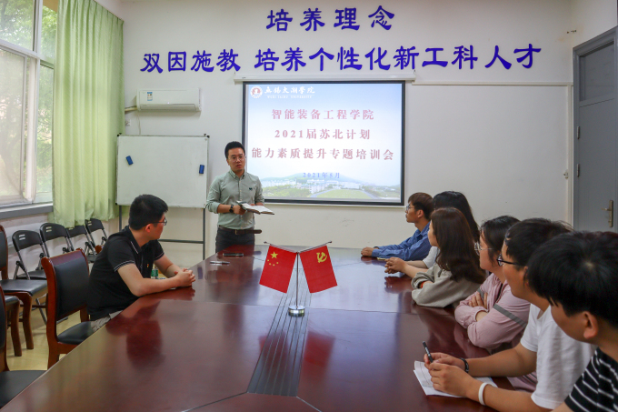 为进一步弘扬志愿服务精神,提升苏北计划志愿者工作能力和服务水平,激励广大青年扎根基层、服务基层、奉献基层,增强苏北计划的凝聚力。5月11日,智能装备工程学院2021届苏北计划能力素质提升专题培训会在学院会议室顺利举办。智能装备工程学院党总支副书记杨学圣主持召开培训会议,辅导员佘子骞、杜薇及2017级报名苏北计划学生代表参会。