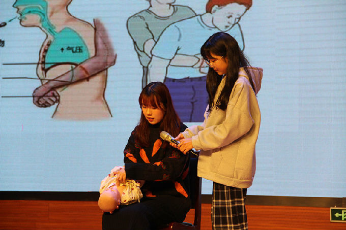 比赛结束后,由急救协会指导老师杨小仙进行点评,她为选手们流畅的操作点赞,指出了急救操作过程中位置、深度与力度的注意事项,体现了规范操作、强调了人文关怀。紧接着,举行了颁奖仪式与急救知识的宣讲——“海姆立克急救法”,宣讲人徐朵鼓励和支持同学们积极学习急救知识与技能,使同学们受益匪浅。
