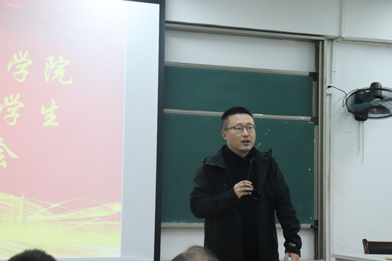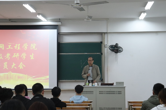 大会的第二项议程,吕忠泽老师对考研报考的情况进行了详细的讲解,首先他表示学习态度决定成败,希望同学们端正态度,积极备考。其次,他讲到我们物联网专业的面试的注意点和重点,以及对于考研的备考,他表示要确定目标,早做准备,长远规划,关注变化,认真学习,才能决战考研。