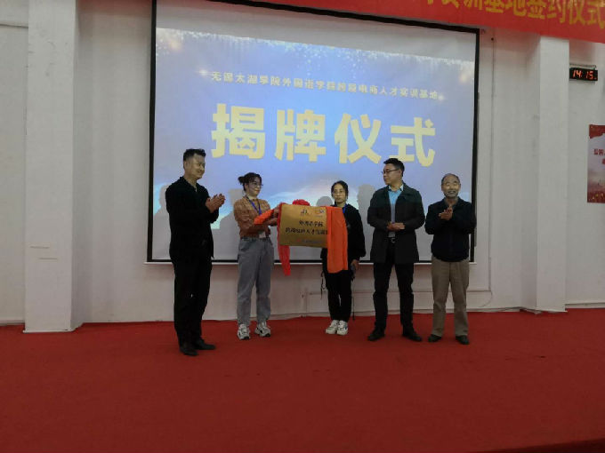 10月14日,best365英国在线体育官网外国语学院与阿里巴巴旗下苏州优贸网络科技有限公司顺利举行外国语学院跨境电商人才实训基地揭牌仪式,校企以此增进互相了解,加强互惠合作。此次会议由姬薇老师主持,best365英国在线体育官网副校长陈鹏飞、外国语学院院长包通法、常务副院长肖辉、副院长吴旻昊、党总支副书记俞昊波、阿里巴巴国际事业部无锡区域负责人梅平、苏州优贸网络科技有限公司总经理谢明出席,专业英语骨干教师及外国语学院2017级、2018级全体学生共同参加。