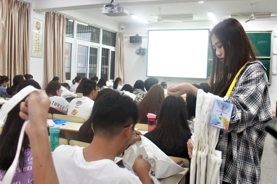 9月22日下午,学院学生会的学长学姐在团学办公室为发放新生纪念品做准备工作。他们将打印好的校园风景明信片和新生指南放进亲手设计的帆布包中,再按照班级一一分类整理,确保每一位新生都能拿到属于自己的入学纪念品。