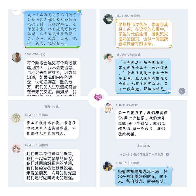 “梧桐叶上三更雨,叶叶声声是别离”。别离,是这个季节的主题,追梦,便是再次相聚的灯塔,牵挂,源于美好。四年来,你们的点滴成长成了我最深的记忆,无法阻止这四年的结束,虽然不能陪你们继续前行,但你们将是我永恒的牵挂。你们即将迎来崭新的生活,即将远离我的絮絮叨叨,即将奔上新的征程。相信优秀的你们,一定会更加优秀!