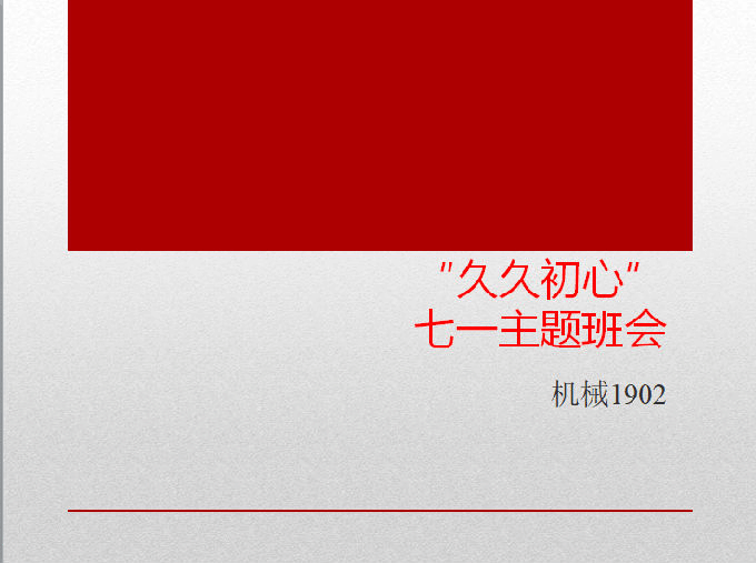 为宣传中国共产党的初心和使命,进一步增强当代青年大学生的使命感与责任感,激发共青团员积极向党组织靠拢,机械1902班于2020年7月1日在线上举行“久久初心”主题班会。