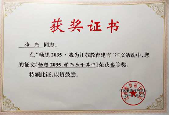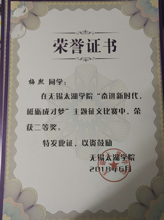 梅熙获奖证书