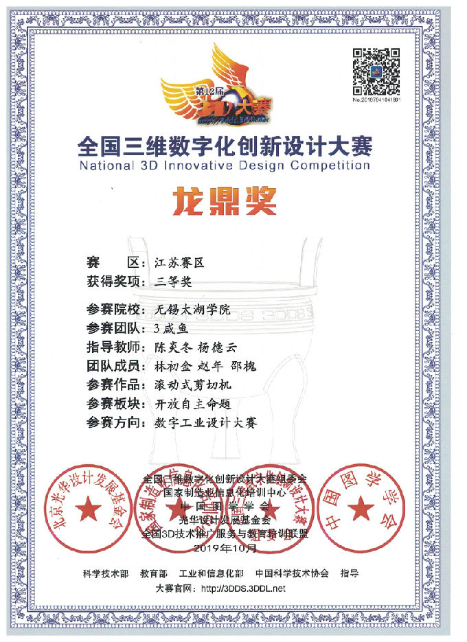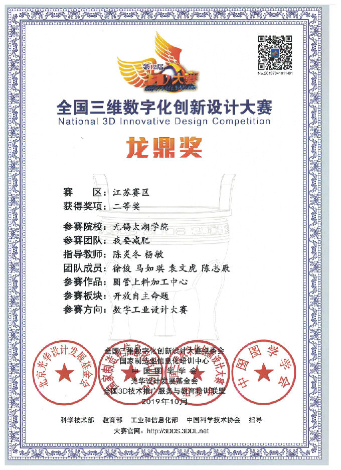 在此次全国三维数字化创新设计中,机电工程学院炫动小精灵设计的题目为工业设计方向自主命题的自动化猪舍饲喂线。参赛队员在经过网上查阅资料,线下走访等路径,发现这一题目在实际生活中的巨大应用价值,通过了长达7月的准备,终于站在了全国总决赛的舞台。在决赛过程中,通过展示精心准备自动化设备,以及对于在实际生产中发挥的积极作用,评委组给了一致好评。最后经过评选获得了三等奖。至此,此次全国三维数字化创新设计大赛完美落幕。