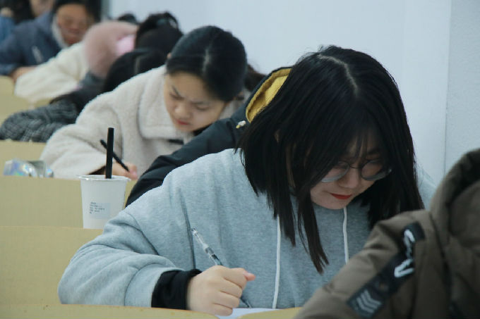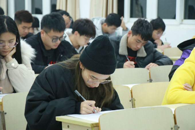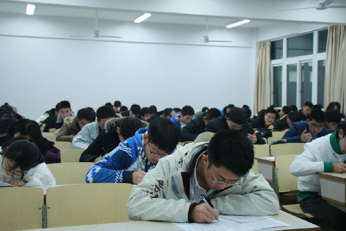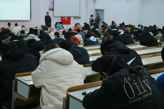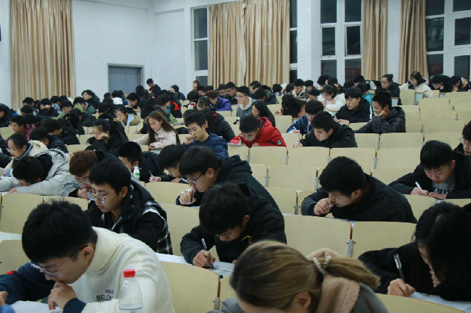 2019年12月3号,物联网工程学院的大一新生在7号楼参加了由物联网工程学院学生会学习部举办的“四冲六达”第一次英语模拟考试。