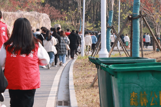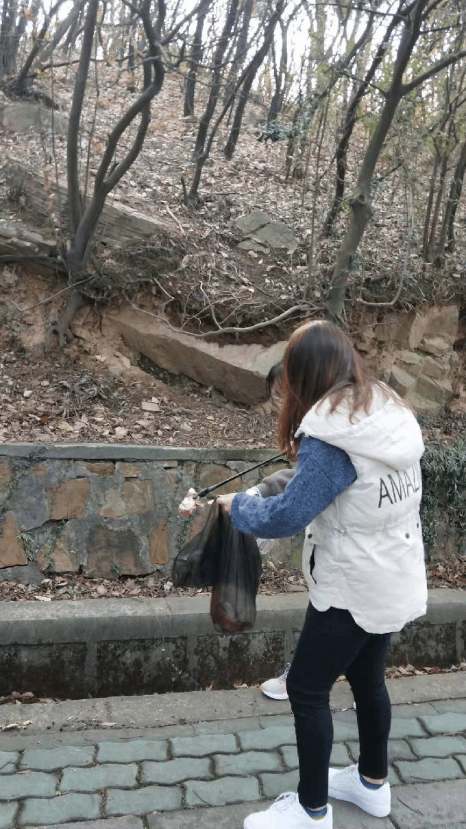 活动开始,全体同学从惠山山脚出发,一路登高。空气中的温润之气和泥土草木的混合,让人神清气爽。同学们一路欣赏沿途山峦起伏的秀丽美景,感受大自然之美带来的愉悦,并捡拾沿途的废纸、食品袋、塑料袋、饮料瓶等垃圾,将草丛中、公路上的废纸、塑料袋、烟蒂、饮料瓶等各类垃圾收入垃圾袋内。尽管山路漫长但没有一个人放弃,都跟着队伍的步伐,相互加油,相互鼓励,朝着目的地坚定向前,充分展现团结奋进的精神风貌。大家共同克服路上的艰难险阻,虽然汗水湿透了衣裳,但脸上都洋溢着灿烂的笑容。