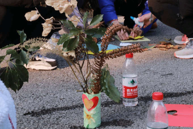 同学们纷纷表示,这么长的路程,如果是自己一个人走的话很可能中途就会放弃,但是在大家相互鼓劲中不知不觉便走完了全程。活动结束后,同学们用收集的枯树枝、树叶等材料完成了一幅幅创意手工作品,做成了冬天最美的样子。