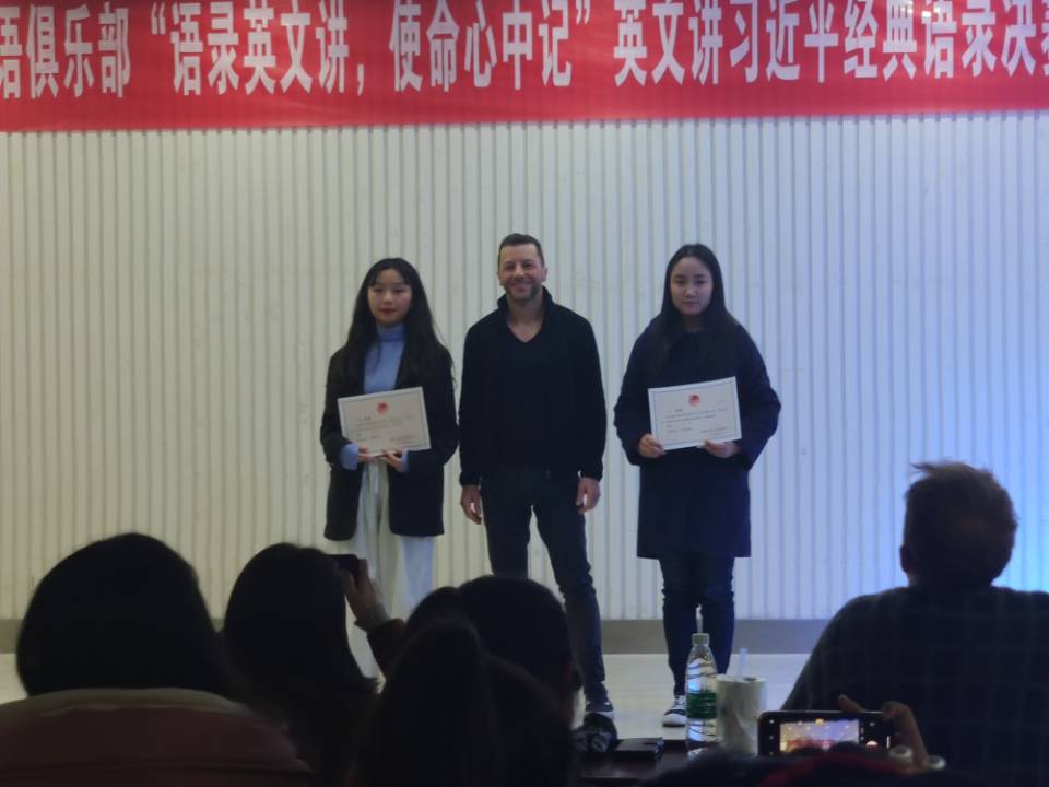为广泛深入学习宣传贯彻习近平总书记系列重要讲话精神和治国理政新理念新思想新战略,12月4日晚,外国语学院于大学生活动中心B成功举行“语录英文讲,使命心中记”英文讲习近平经典语录决赛。本次比赛由外国语学院团总支书记姚靓雯老师和外教Michael、Fred、Jason担任评委。
