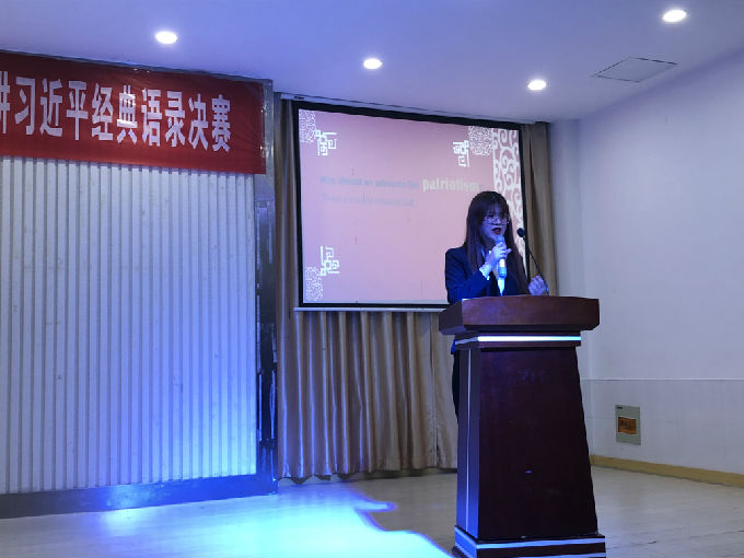比赛中,选手们围绕习总书记系列重要讲话精神,通过自己独特的视角用英语阐述习近平经典语录,完美地诠释了语言的魅力,时或激情澎湃,或诚挚温暖,充分将习近平经典语录内化于心,外化于行。“今天,我们的生活条件好了,但奋斗精神一点都不能少,中国青年永久奋斗的好传统一点都不能丢。”习近平主席如是说。如今的中国,已经不再是当年的中国。新时代中国青年运动的主题,新时代中国青年运动的方向,新时代中国青年的使命,就是中国共产党领导,同人民一道,为实现“两个一百年”奋斗目标、实现中华民族伟大复兴的中国梦而奋斗。