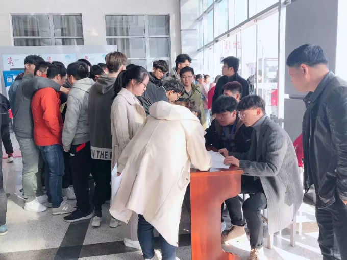 招聘会一开始,16级的同学们都手持自己精心准备好的简历,穿梭于人流之中,积极地与招聘人员交流,主动了解用人企业的情况以及岗位的所需条件,他们自信的眼光是对四年青春的礼赞。