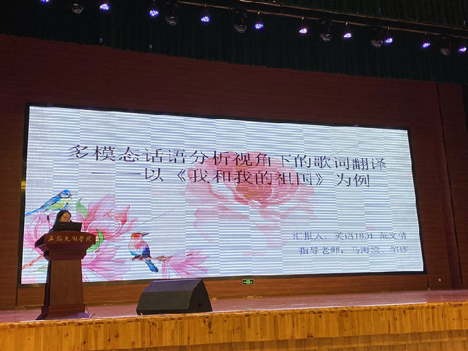 英语1801 | 范文倩 | “多模态视角下的歌词翻译——以 《我和我的祖国》为例” | 马海滢 邹璆 | |
