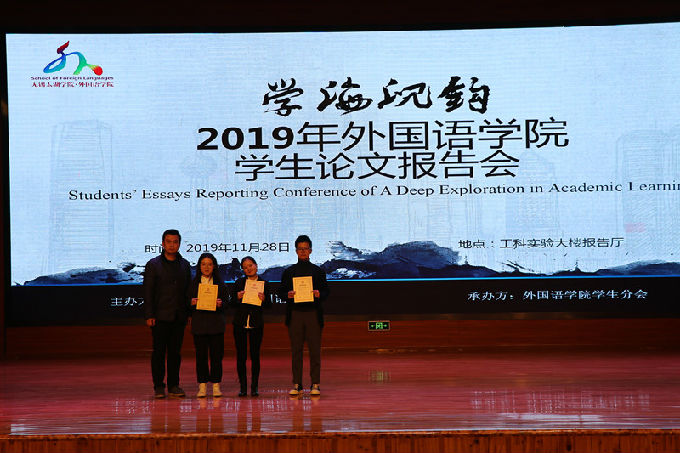 11月28日下午,2019年第二届外国语学院“学海沉钩”学生论文报告会于工科实验大楼一楼报告厅顺利举办。外国语学院院长包通法、副院长刘荔、党总支副书记俞昊波出席,学院全体师生共同参加。