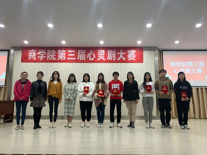 经过激烈的角逐后,获得心理剧一等奖的是心理剧《年少有为》,二等奖的是心理剧《双重人生》、《贷价》,三等奖是心理剧《外貌协会》、《伤》、《有班才暖》,为获得一等奖团队颁奖老师为聂雨苗老师,为二等奖团队颁奖的老师为宋宜娜老师和马保祯老师,为获得三等奖团队颁奖老师为商学院陈平老师和徐濯潇老师。