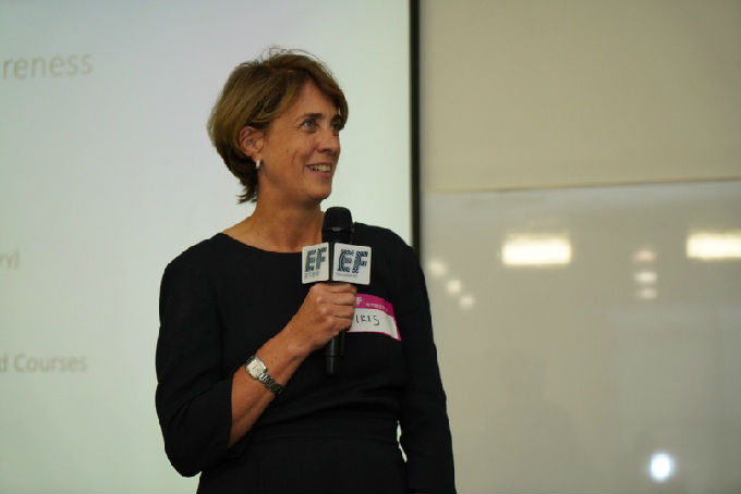 紧接着,英孚海外游学留学全球总裁 Iris Hormann从多角度,多层面向我们讲述“ How to become a leader in the future “并耐心地回答了部分现场大学生们的提问,帮同学们解决了现实生活中面临的困惑。