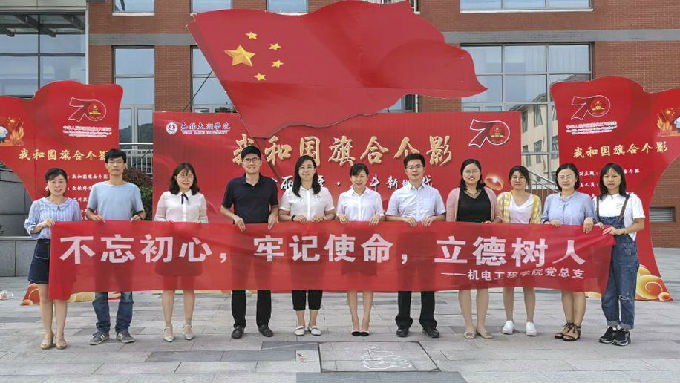 党支部成员还到“我和国旗合个影”的展架前合影留念,以此表达对伟大祖国的美好祝愿。