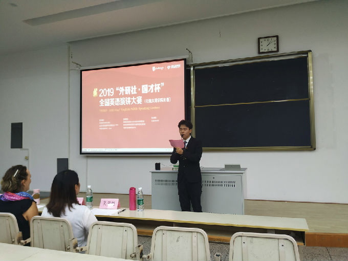 10月11日下午,外研社·国才杯”全国英语演讲大赛best365英国在线体育官网初赛顺利展开。外国语学院副院长吴旻昊、英语系主任孙亚玲、齐丽红老师及外教Fredrick Jerome Flynn、Maria出席此次比赛担任评委。