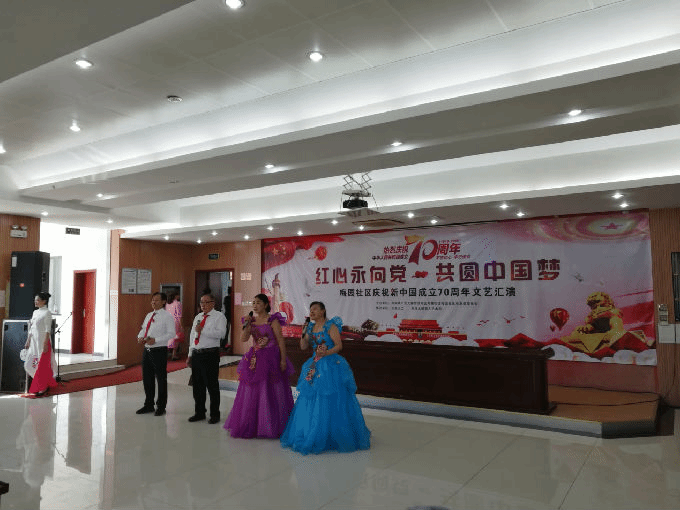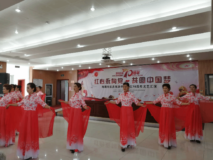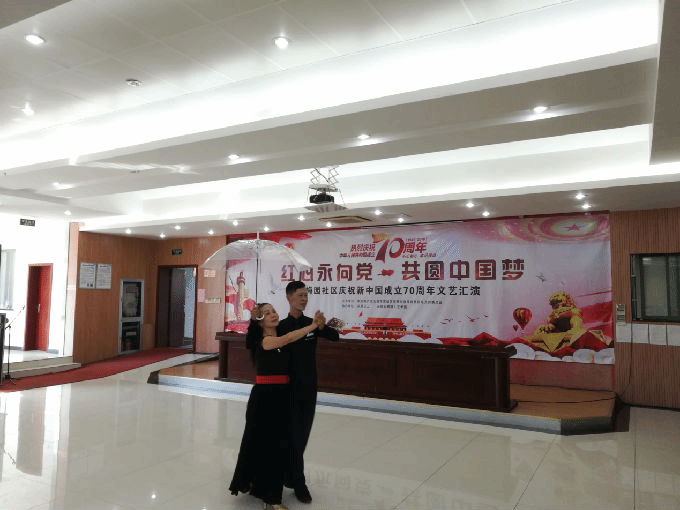 2019年9月20日外国语学院党总支教职工党员同志参加了梅园社区党总支举办的庆祝新中国成立70周年的文艺汇演活动。社区黄旭书记发表了热情洋溢的讲话,歌颂祖国七十年来取得的巨大成就。