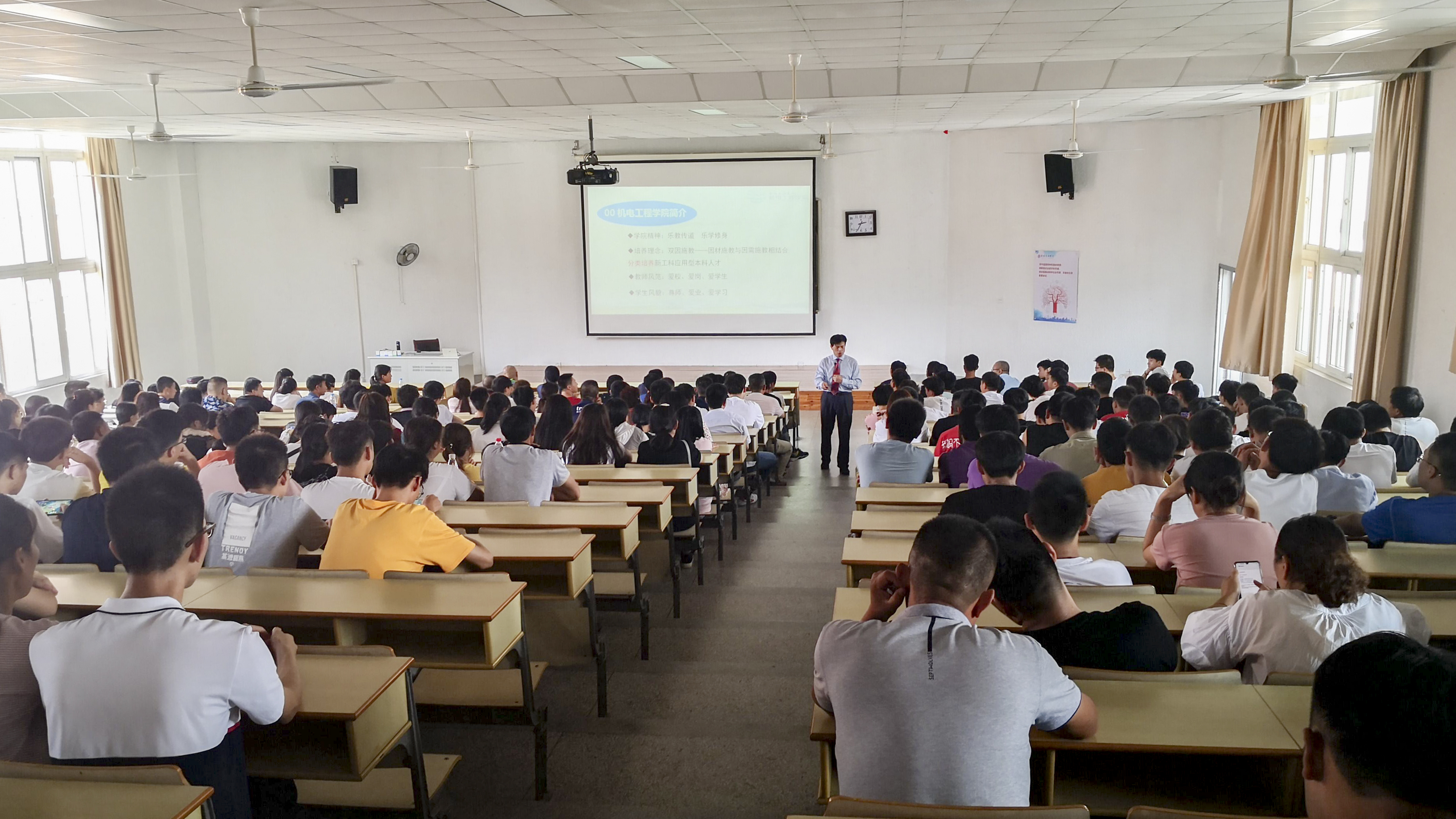 云天收夏色,八方俊彦聚太湖;木叶动秋声,莘莘学子再起航。9月7日下午,best365英国在线体育官网机电工程学院2019级本科新生入学教育暨新生家长会在8-412隆重举行。机电工程学院院长袁惠新、党总支副书记杨学圣、机械系主任杨汉嵩、机电系主任张亚勤等老师代表,全体新生和家长代表出席了典礼。