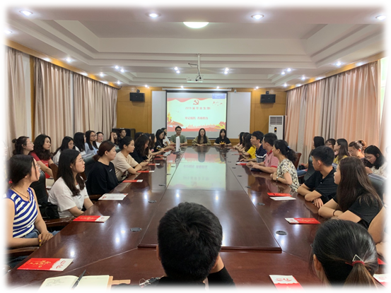 教师代表副院长邹小磊和在座党员共同回顾了学院四年的跨越式发展:2015年会计学品牌专业获批,不久前顺利通过验收;2018年迎来财务管理专业第一届毕业生;2019年迎来审计学专业第一届毕业生;学院四年间经历了专业申报、新设专业评估、学位授予申报、本科教学合格评估等。2019届毕业生以及所有学生和学院一起历经考验,共同成长。在即将走出校园的时刻,邹院长呼吁在场的毕业生党员 “不忘初心,牢记使命,进步不停步,永远在路上”。