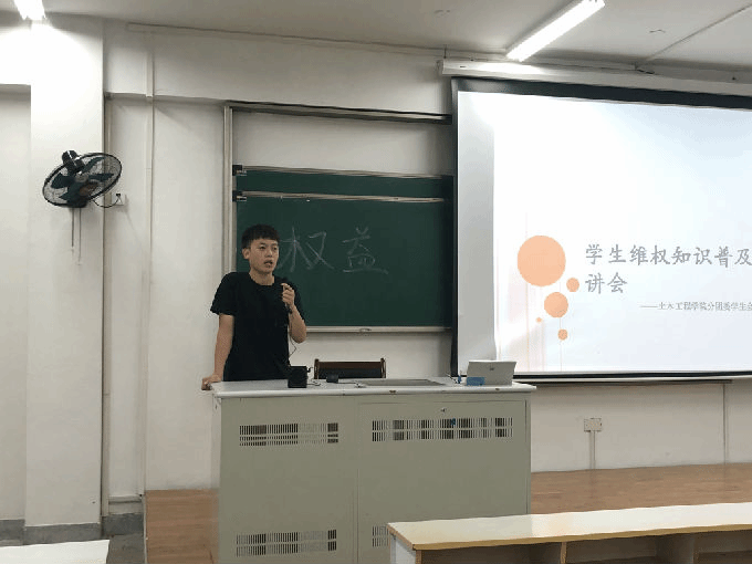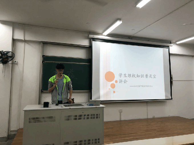 土木工程学院分团委学生会主席蔡林峰首先介绍了开展本次宣讲会的目的,他指出:引导我院学生树立维权意识,运用合理合法的途径解决所遇到的权益问题,能够创造更好的学习和生活环境。