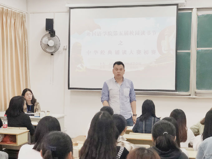 5月15日下午,外国语学院诵读大赛初赛于8号楼成功开展。本次诵读大赛以“诵古今经典、写华夏文明、讲中国故事”为主题,参与人员包括外国语学院党总支副书记俞昊波、学工秘书姚靓雯、外国语学院学工助理团全体成员以及参赛选手等。