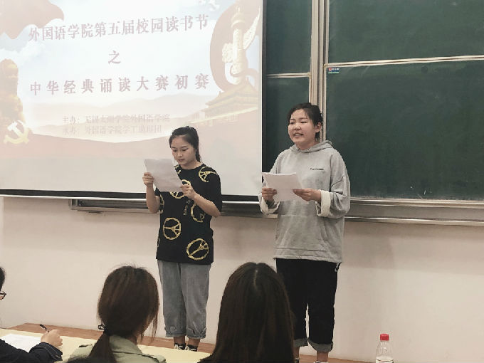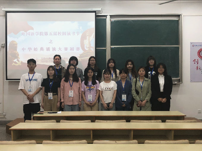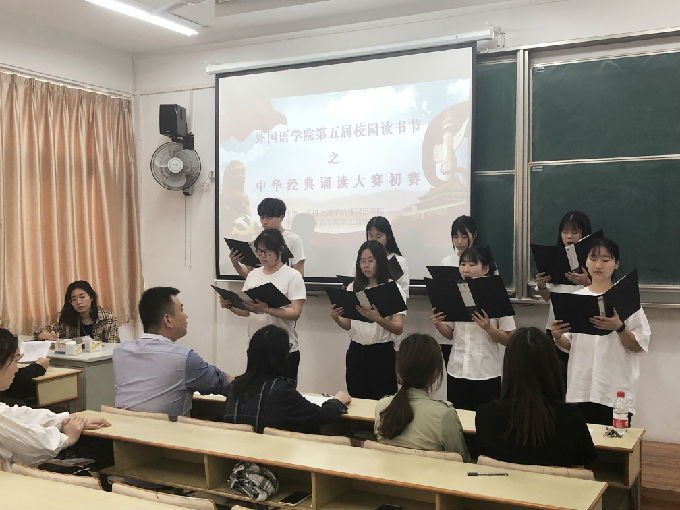 一起走进经典诗文,让优秀的民族精神在我们的血脉中流淌;一起走进经典诗文,让民族文化的智慧支撑我们人格的脊梁。在主持人的精彩开场后,外国语学院诵读比赛初赛正式拉开序幕。