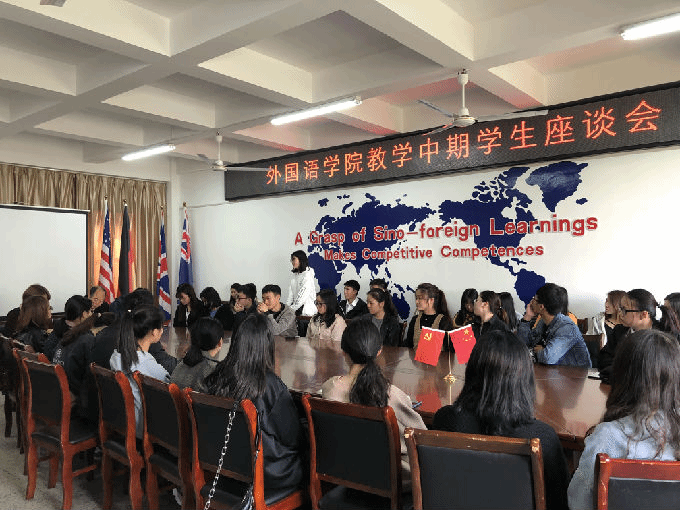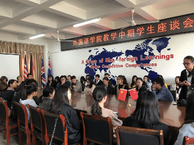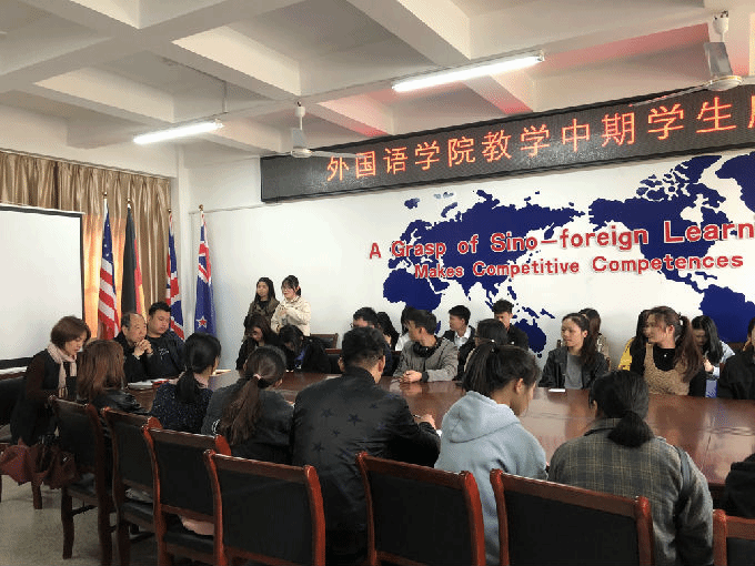 根据2018-2019学年第二学期期中教学检查工作的安排,外国语学院于4月16日中午12.30在6号楼辅楼211会议室召开学生座谈会。出席此次座谈会的有包通法院长、刘荔副院长、俞昊波副书记和16-18级各班级学生代表。