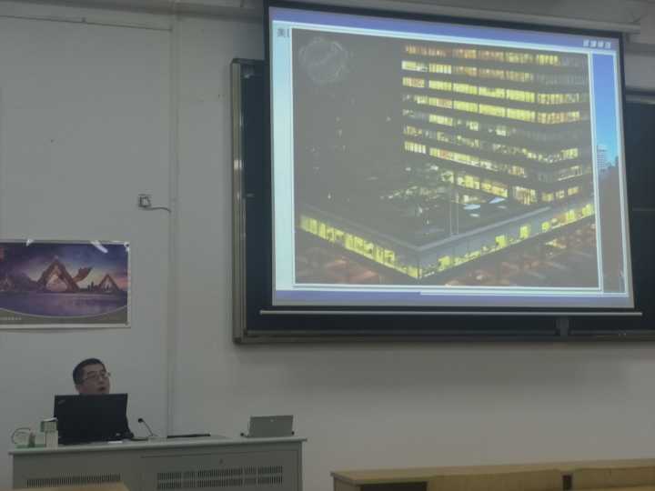 讲座开始,周建老师首先列举了从古至今的各种建筑的幕墙设计,并且一一列举了建筑幕墙的优点和缺点,让我们了解了什么是幕墙。