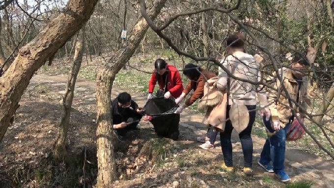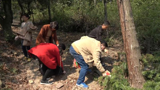 2019年3月25日下午,外国语学院教师党支部第一批前往军嶂古道清理垃圾的党员老师开始行动了。