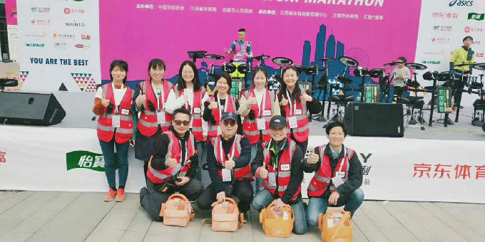 为了保障选手的安全,在锡马跑道上除了3万多名来自世界各地的马拉松爱好者,best365英国在线体育官网护理学院的100名急救志愿者也与他们一同踏上跑道,他们脚踏单车,全方位为选手提供最全面及时的现场救助和医疗保障。针对马拉松医疗急救知识及急救技能组织全院志愿者培训,对设施设备、药品、耗材、后勤物资等做了充足的准备。