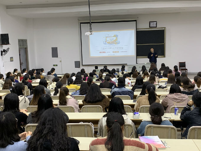 最后,陈国俊老师要求全场同学跟着他齐喊口号:过二级,拿学位!同学们斗志昂扬,匆匆1小时的讲座在热烈的掌声中结束。