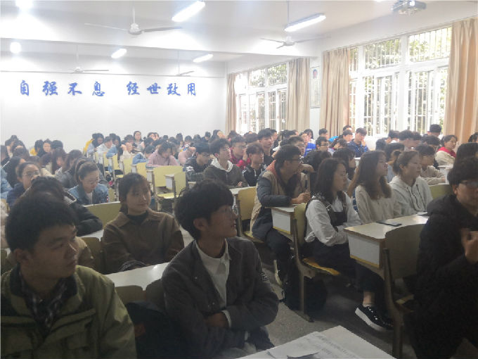 刘教授生动的讲解受到了同学们的热烈欢迎,搏得了阵阵掌声。同学们受益匪浅,对即将到来的比赛摩拳擦掌,整场讲座生动精彩,取得圆满成功。