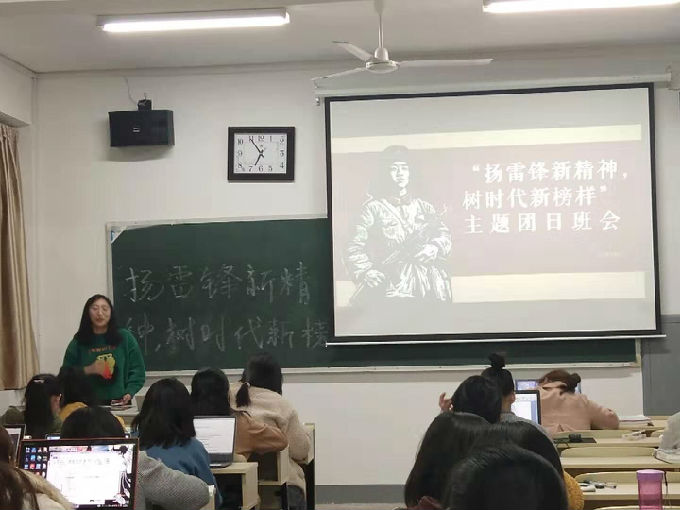 然后,团支书向同学们介绍雷锋同志的生平重要事迹,并播放有关改革开放40周年中国各地发生巨大变化的视频。在团支书声情并茂的解说之下,同学们仿佛身临其境,个个都听得聚精会神,不错过任何一个精彩的瞬间。