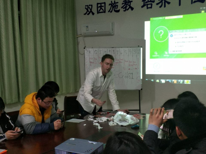 活动开始,Michael老师开始做自我介绍。工科的学生普遍英语基础较薄弱,大家都担心无法听懂。Michael老师一开口,纯正的伦敦音仿佛让大家听到了听力考试一般。他给同学们详细介绍了自己居住的地方,并展示了伦敦的美景。然后便开始了当晚的Free Talk。他鼓励同学们说出自己知道的英国食物,比如说咖喱饭,薯条等等。慢慢的,大家聊到了雅思,关于雅思考试中可能遇到的问题,Michael老师也给很好的建议。活动过程中,Michael老师会根据大家的反应,给到同学们思考的时间,让每个人尽量都能用英语来与他单独对话。在轻松愉快的气氛和Michael老师的不断鼓励下,参加这次活动的每个同学都勇敢站起来用不太流利的英语与他交流。期间外教还带同学们做了游戏,大家相互配合,真的是非常有趣。