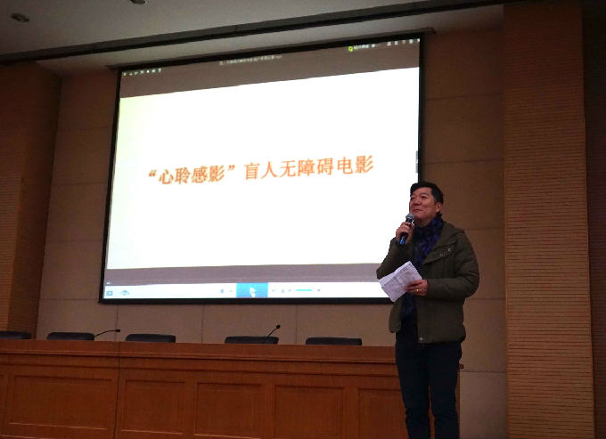 2018年12月22日上午,无锡市图书馆开展了“心聆感影”为主题的助盲活动,物联网工程学院的志愿者协助志愿服务工作。活动通过播放盲人无障碍电影,让盲人朋友也可以感受到电影的魅力,从电影中感受到乐趣。