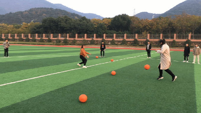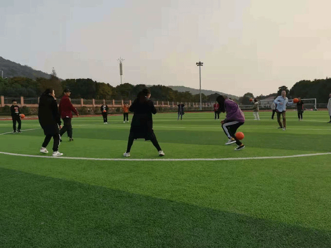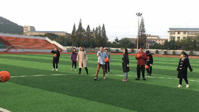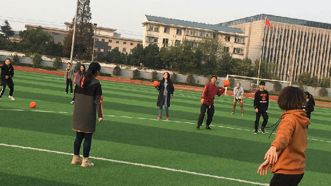 游戏规则很简单,运动器械是排球,我们被分为两队,各自沿着操场白线站成两列,一队用球砸对方,若对方被砸中,则对方被淘汰;但若对方在球落地之前接住,则扔球方淘汰。注意的是,出于安全考虑,扔球时只能朝对方身体下部击,不然会被算作违规。明白规则后,大家很快加入了游戏,大家敏捷度很高,很多同学都十分会躲,现场气氛十分高涨,有些同学会出其不意的击球,致使他们的对手猝不及防地就被淘汰了。大家很多时候都把目标放在Michael身上,因为Michael的第一个球就显得“来势汹汹”,洋溢着运动的热情。每当大家击中目标时,都会欢呼“我击中了!”就连Michael也被淘汰了好几次。到后来,经大家提议,稍稍修改了游戏规则,换了种玩法。我们把范围缩在操场中间的圆圈里,一队全部扔球,而另一队只能躲。并且,这次一队都是同时掷出。面对一次性而来的视觉上数不清的球,场面一度变得非常壮观。大家不禁更加灵活了起来,誓把对方淘汰,又要注意自身安危。到最后,团队赛变成了个人赛,大家在“圈”中混战,只要间隔两米左右,拿到球的人就可以任意选择目标,Michael也活力十足,玩起来颇有些专业的架势。到最后,场面只剩两位女同学决战,远远望过去,无论眼神、动作和敏捷度都令人叫好。