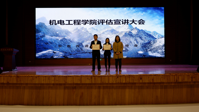 11月8日下午4点,机电工程学院迎接评估动员大会在工科实验大楼报告厅隆重举行。机电工程学院院长袁惠新、党总支副书记杨学圣、教学副院长杨敏、分团委书记许心怡及机电工程学院全体教师和学生参加了此次动员大会。