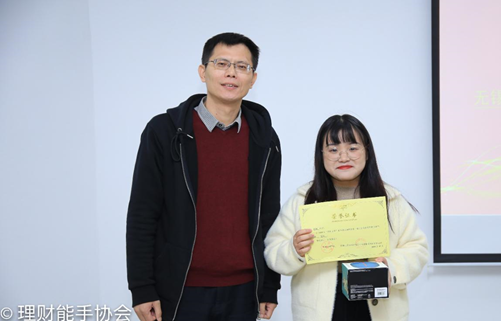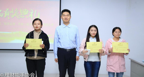 接下来进行的是三等奖的颁奖仪式,由招商证券市场部经理洪超为获得三等奖的同学颁奖并分发奖品充电宝,三等奖获得者:叶贞燕、刘越、赖宝玲。